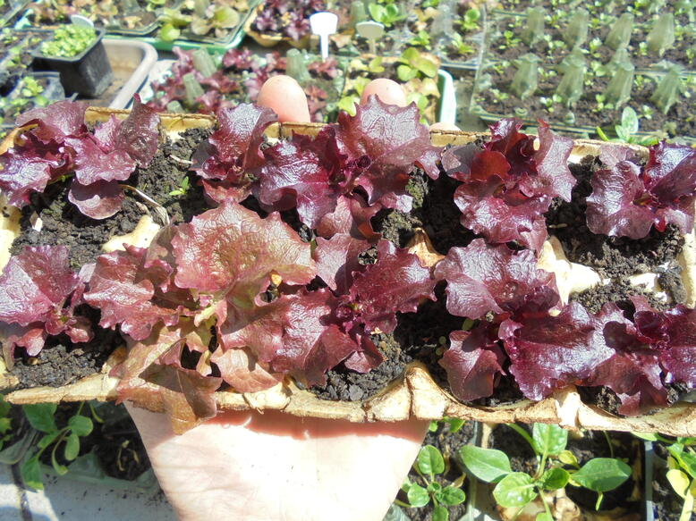 Lollo Rossa lettuce seedlings. Der Preis ist pro Setzling.